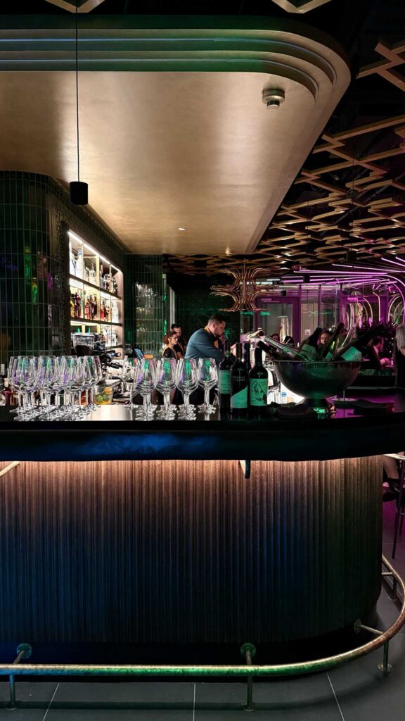 The interior design is just as impressive as the view. Custom-designed wallpapers, embossed tiles, personalized champagne coolers, and unique furnishings all contribute to the venue’s elegant and memorable ambiance. Every detail, from the décor to the architecture, has been meticulously crafted to harmonize with the venue’s sophisticated atmosphere.